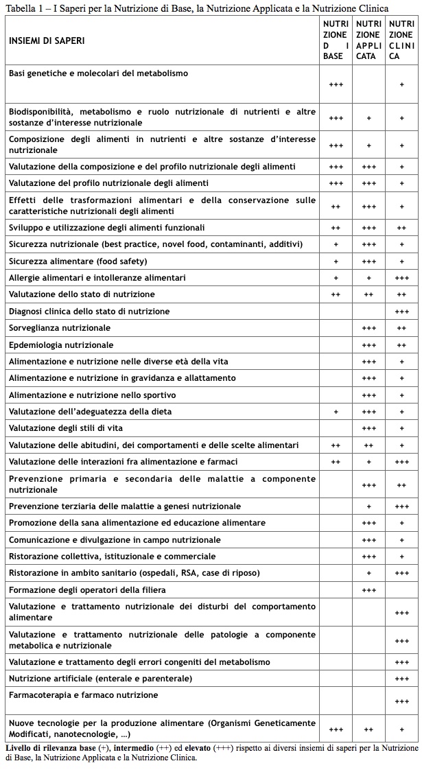 Questo documento è anche da intendere come un primo passo sia per la migliore organizzazione della formazione post-laurea – a cominciare da corsi di Master e di Specializzazione sia per la migliore identificazione della professionalità e delle competenze da riconoscere (in senso anche normativo) alle diverse figure che operano nel vasto campo applicativo della Nutrizione Umana.
